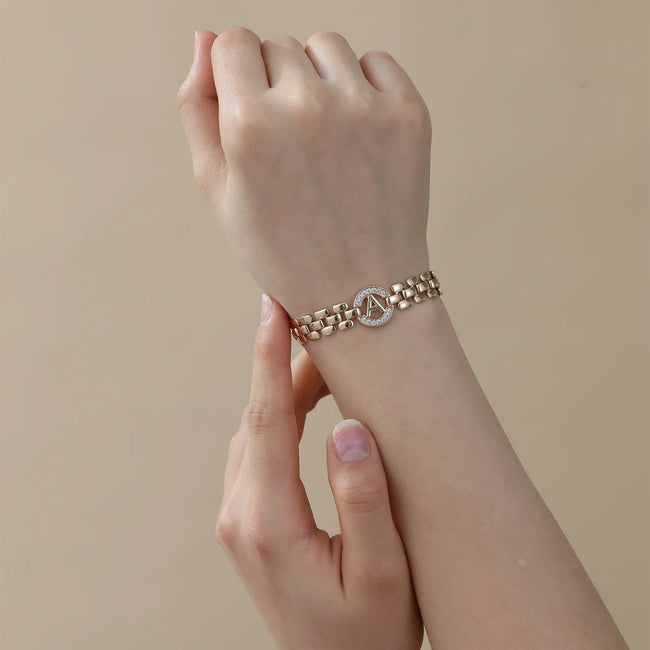 APSVO 14K Gold Plated Initial Bracelets for Women Mom Wife Mommy Daughter Cubic Zirconia Watch Bangle Wrist Charm Bracelet Alphabet Letter A Chain Bracelet Birthday Mother's Day Jewelry Gifts for Her