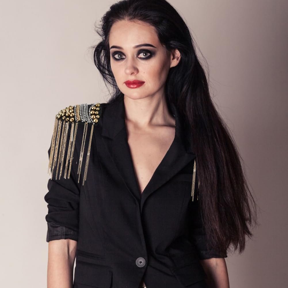 Product details 2Pcs Rhinestone Shoulder Badges 20x11.3x0.75cm Detachable Iron Tassel Epaulets Golden Shoulder Brooch for Men and Women Cloth Uniform Accessories With Rhinestone: You will receive 2pcs golden tassel shoulder badges in paper cardboard box.The size of each badge is...