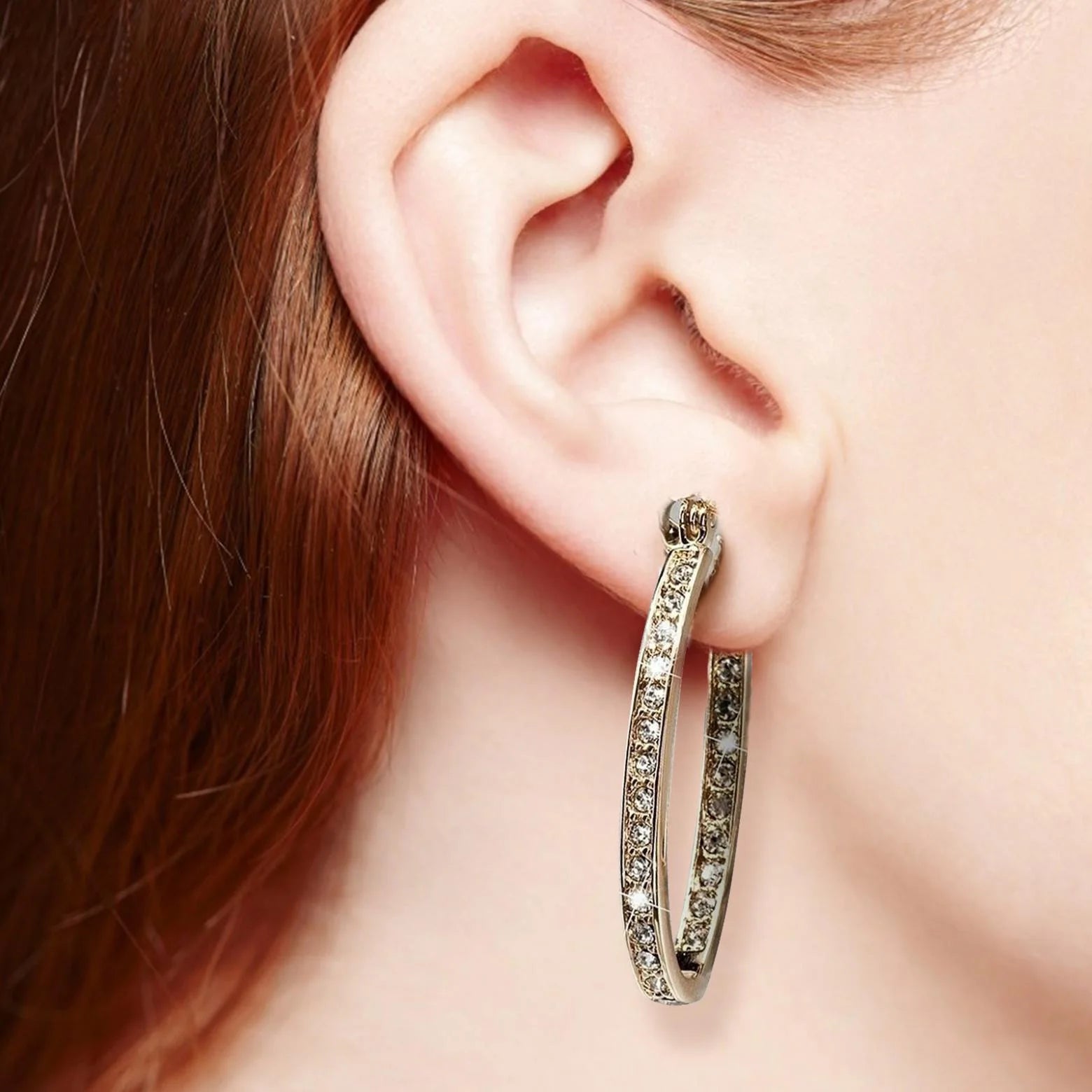 The finishing — these sparkling diamond hoop earrings feature a versatile design that can add a feminine to any style. Match them with your casual or formal outfits.